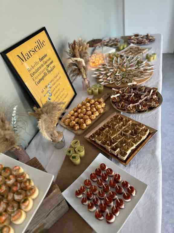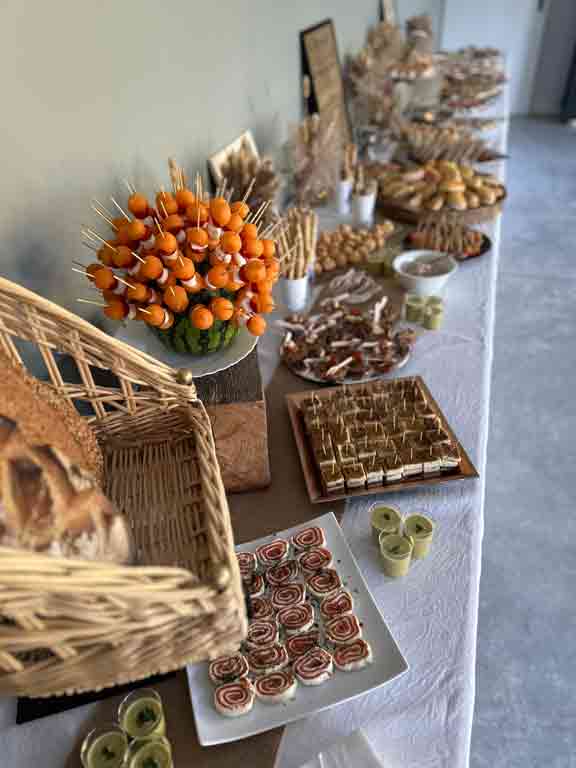 Nous pouvons vous proposer une prestation traiteur (paella, pizza, buffet dinatoire, brunch, ... ) N’hésitez pas à nous contacter pour plus d’information et nous nous ferons un plaisir d’organiser votre évènement.