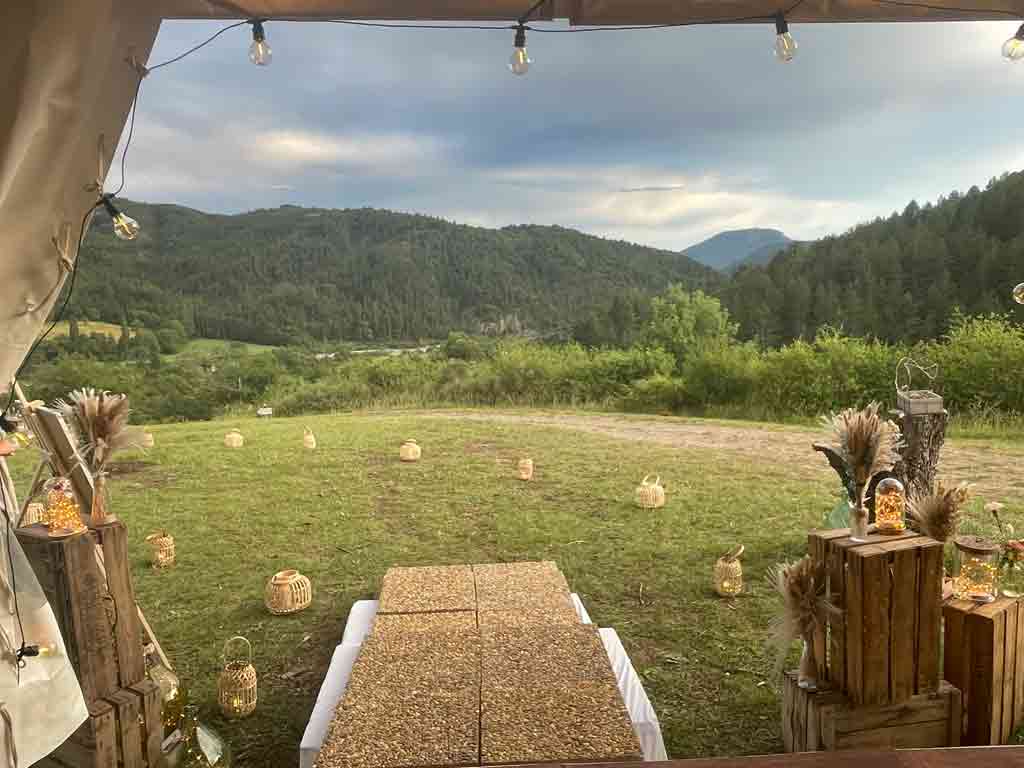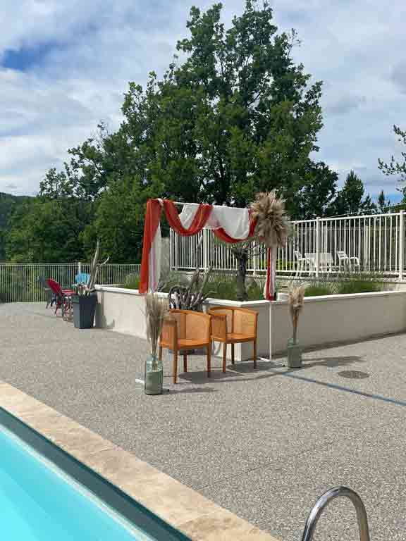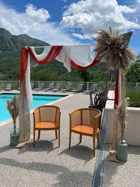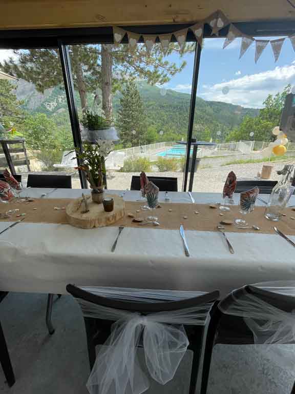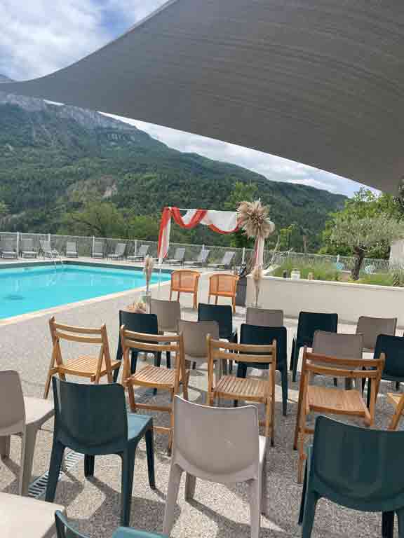 Notre domaine présente une capacité de 49 personnes, une Salle de réception de 70 m2 toute équipée, face à la piscine, le terrain de pétanque, les montagnes environnantes, dans un cadre exceptionnel. Idéal mariage, anniversaire, cousinade, séminaire à seulement 20 km de SISTERON, 1 h 20 d’AIX EN PROVENCE. Privatisation du site à la nuitée, Week end ou semaine.